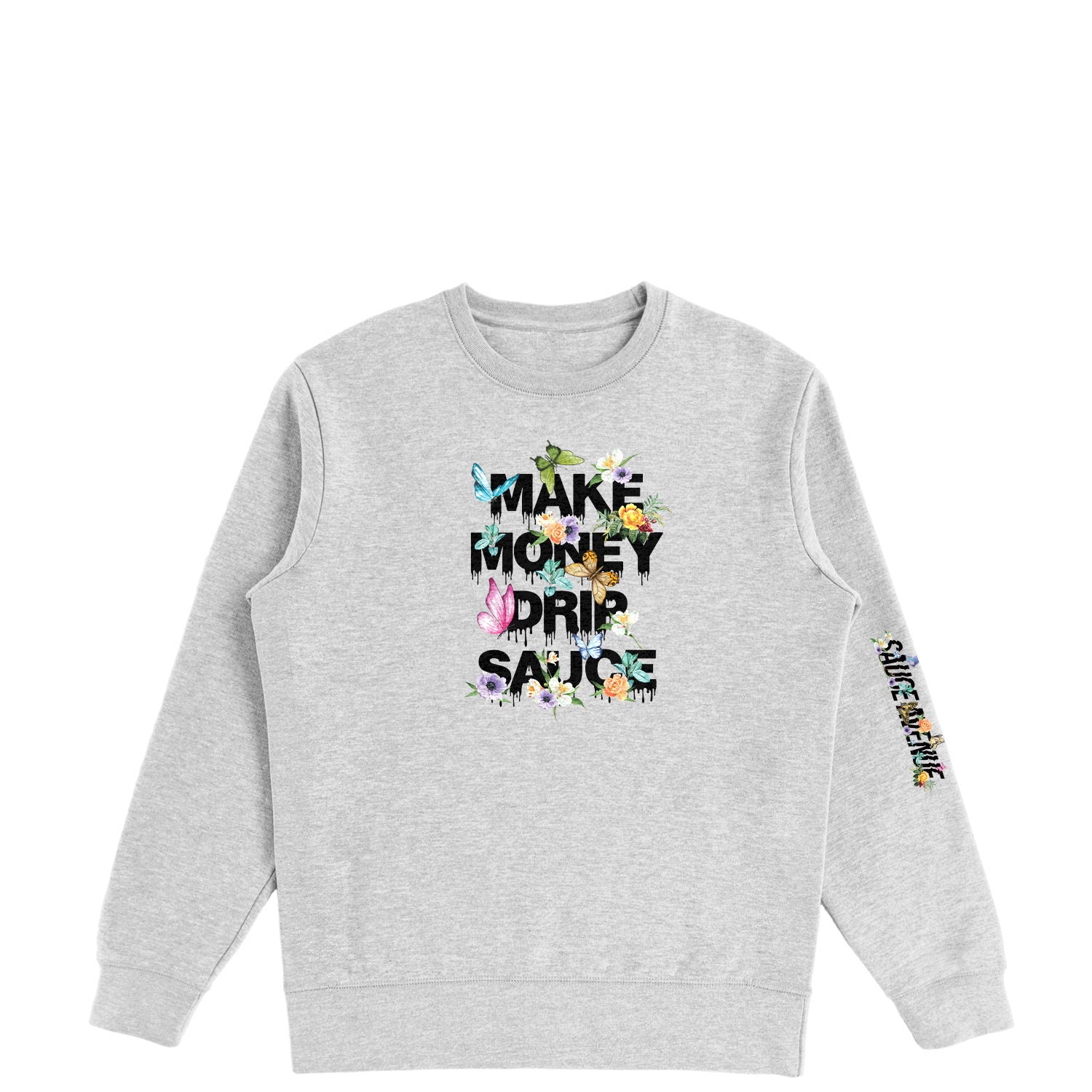 MMDS Flowers & Butterflies Black | Light Gray Crewneck